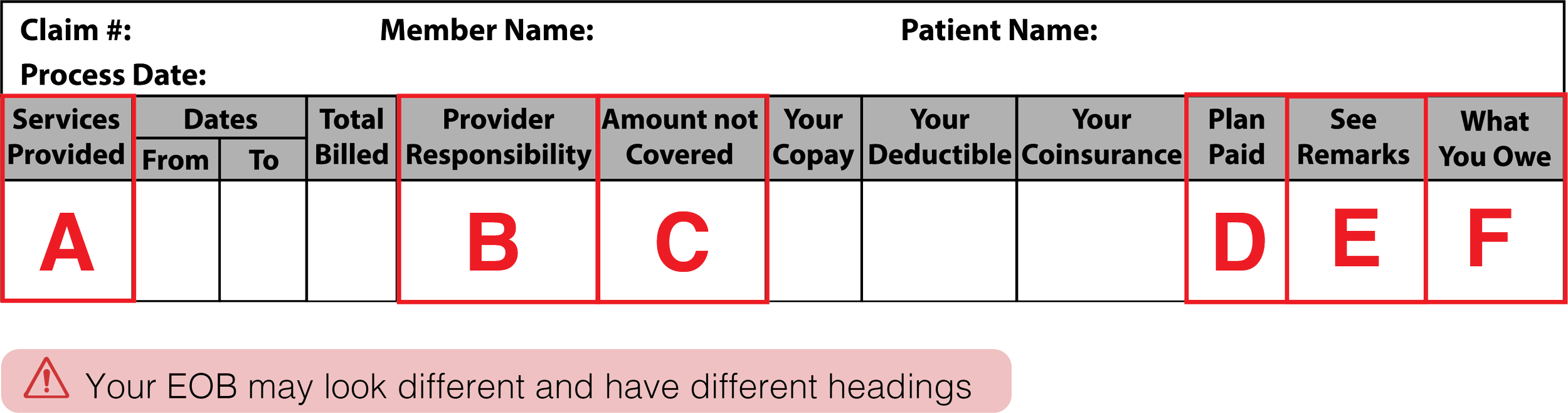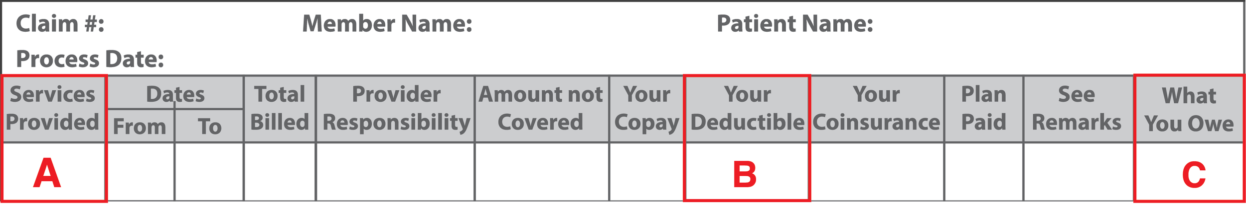 C: Amount Not Covered - What your insurance company does not pay for. Sometimes called “Plan Exclusions”.