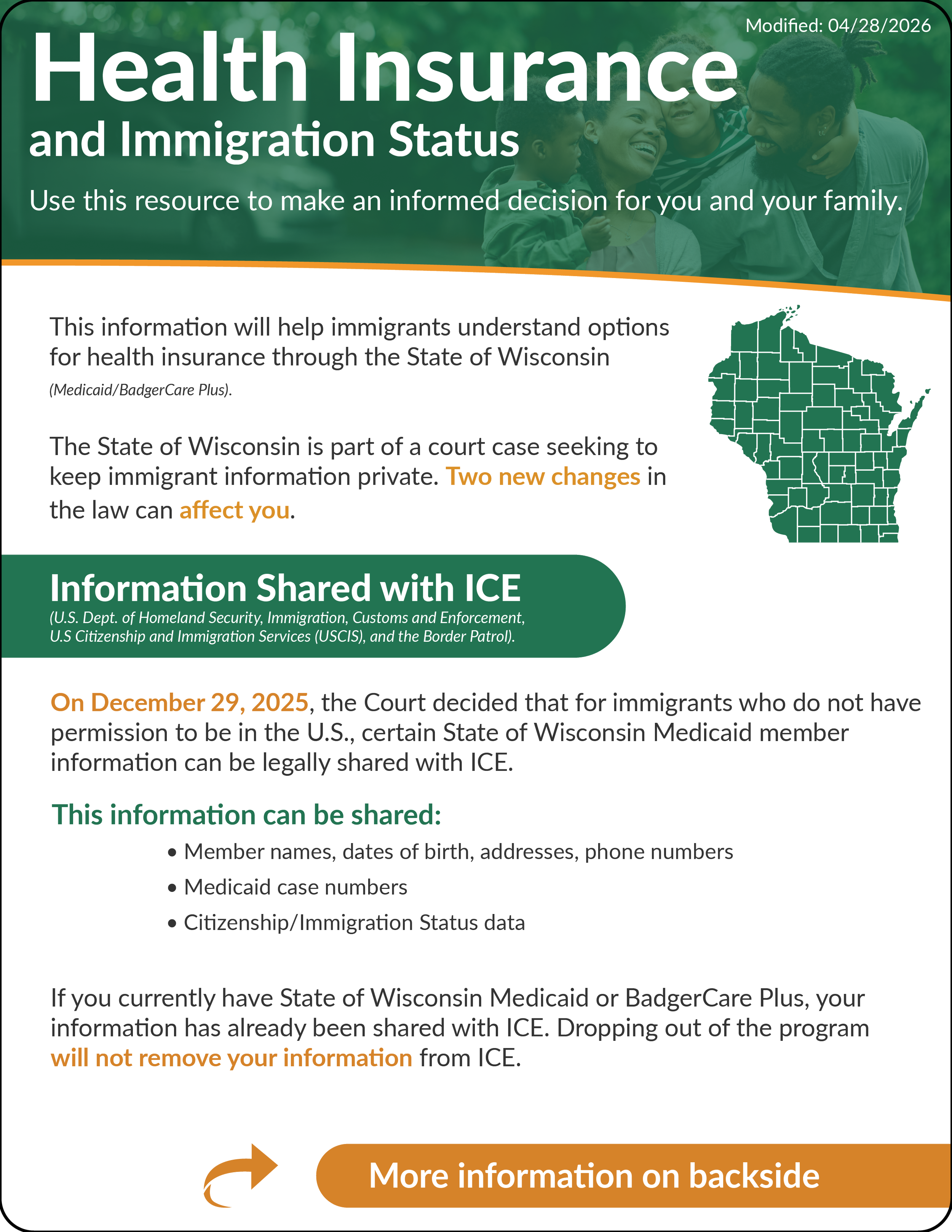 Important: Children's enrollment in BadgerCare Plus or any public benefit program won’t hurt their parents’ immigration status!