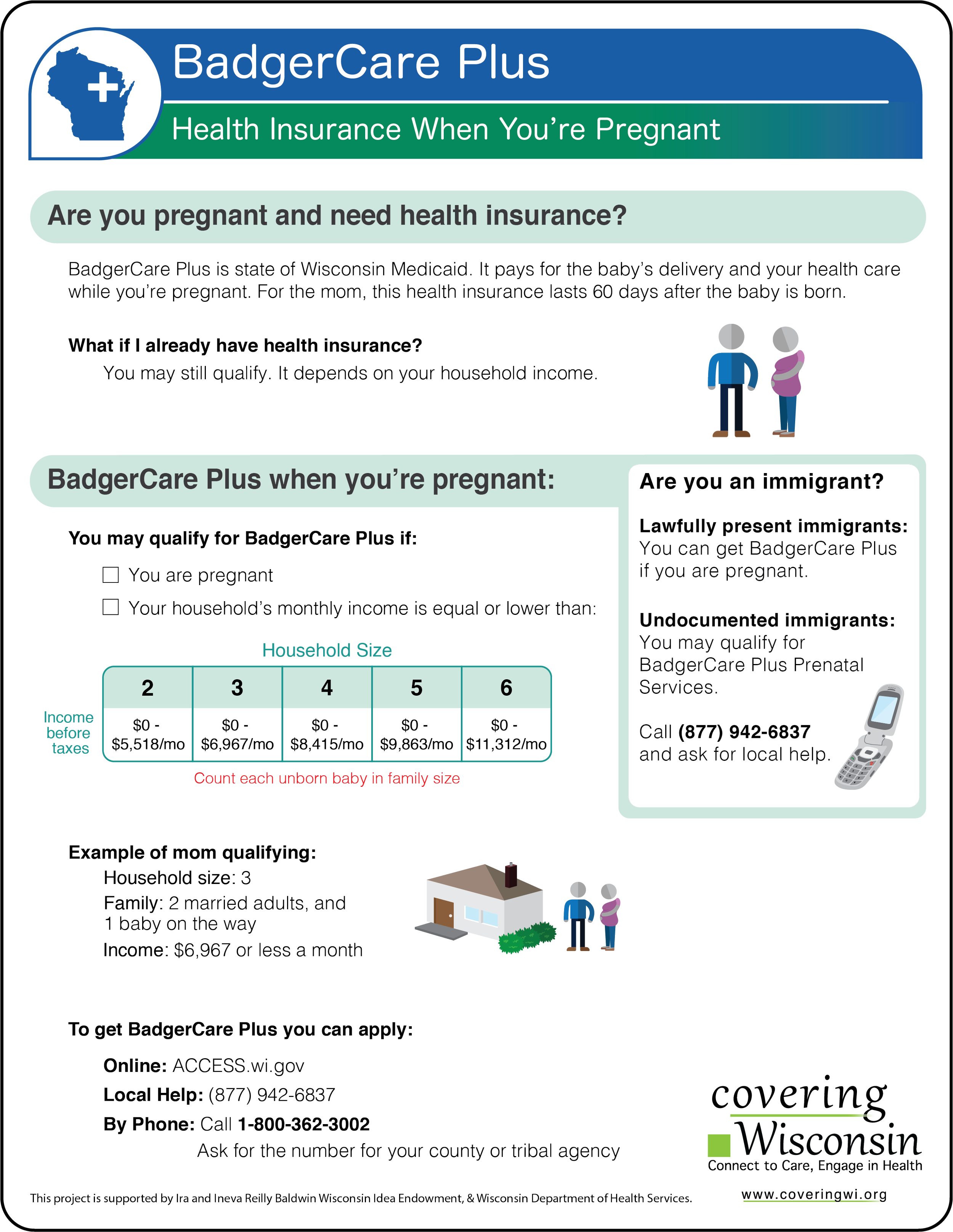 This is a program for anyone who is pregnant regardless of immigration status. It will pay for any care of the mom while pregnant until 90 days after giving birth. Children born in the US can then apply for BadgerCare Plus.